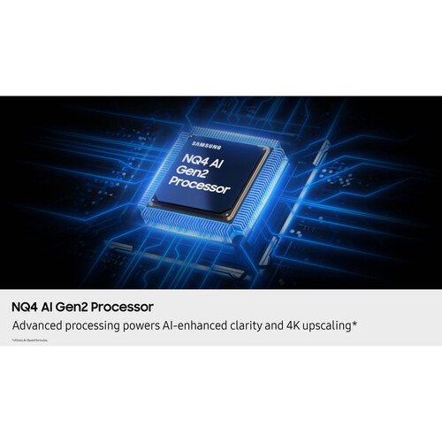 For sound, the TV comes with Dolby Atmos and Object Tracking Sound Lite, enhancing immersion by following on-screen action. With Q-Symphony, it syncs seamlessly with compatible Samsung soundbars.